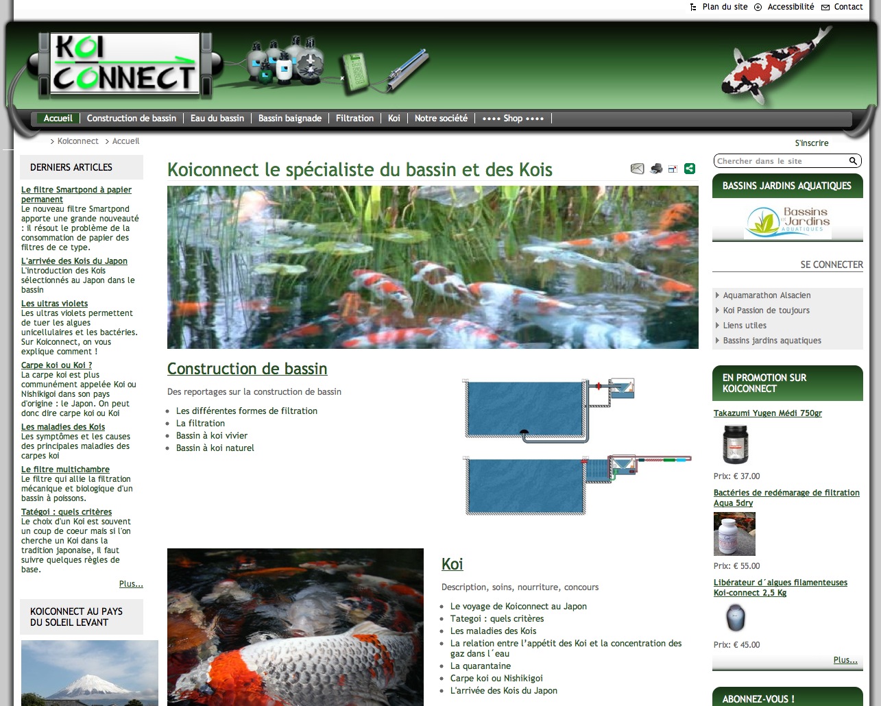 Une vue du site www.koiconnet.com qui utilise le module de vente en ligne de Solgema