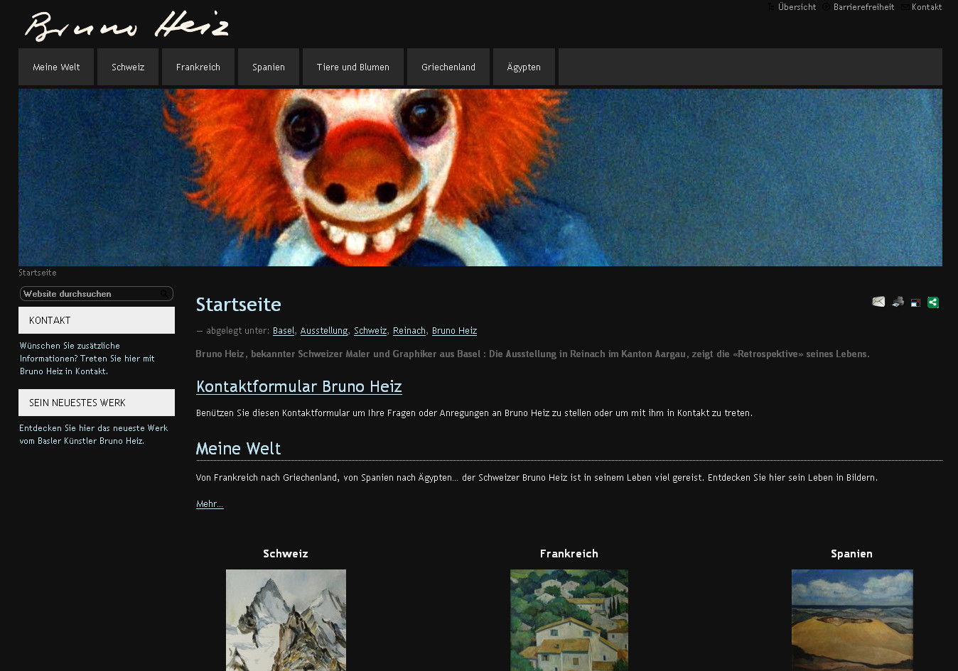 capture d'écran du site internet du Bruno Heiz, peintre suisse