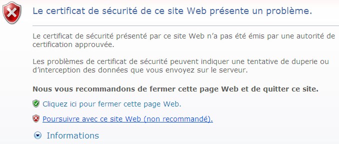 Le certificat de sécurité présente un problème IE7
